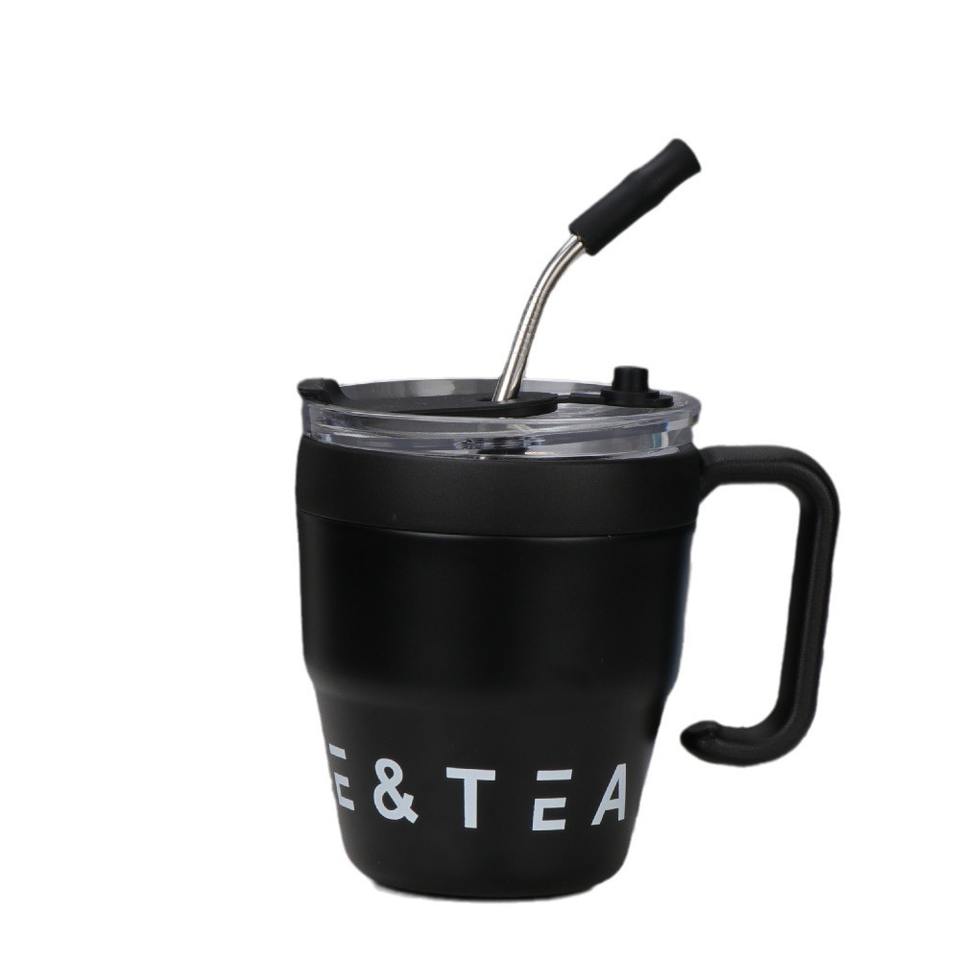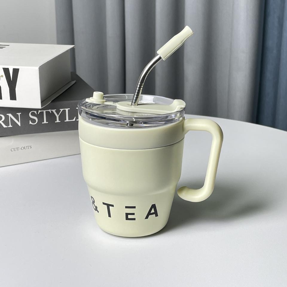 480ml Cross-Border High-Value Stainless Steel Water Cup Office Fashion Wake-up Coffee Sippy with Straw for Home Travel
