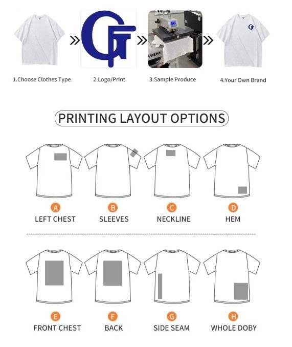 Logo position:Front, back, Left Sleeve, Right Sleeve, lower hem, back neck