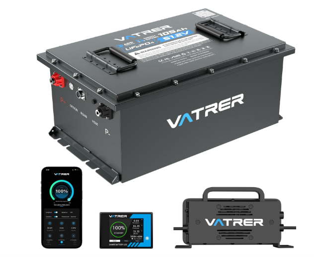 48V 105Ah Lithium Golf Cart Battery, Built-in Smart 200A BMS, with Charger 4000+ Cycles Rechargeable LiFePO4 Battery