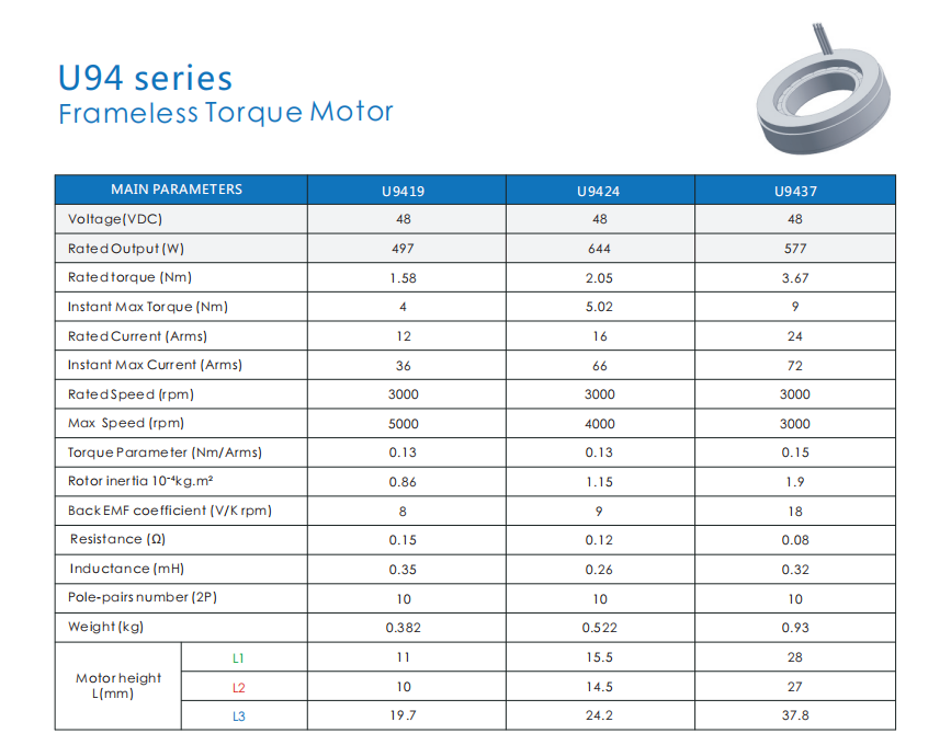 48V Frameless Brushless Torque Motor 1.58NM OD94mm Height19mm Direct Drive for Gimbal System Home Appliance & Fan Use