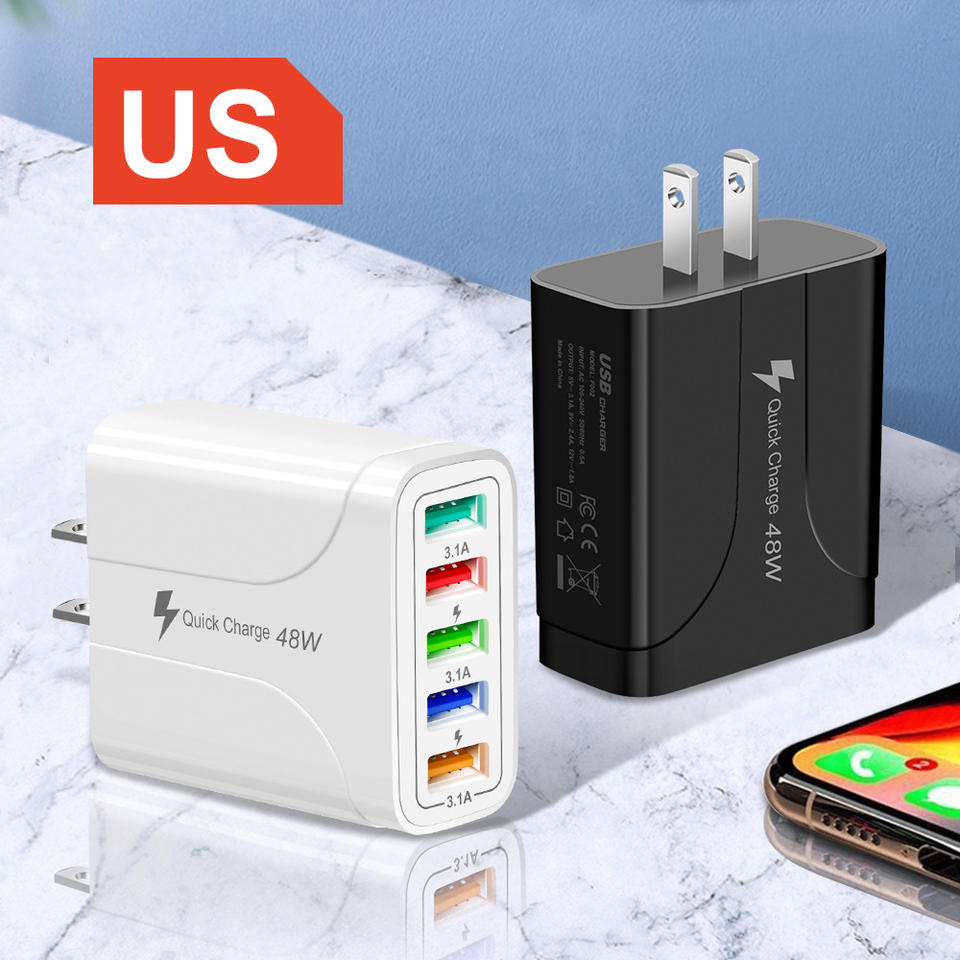 48W USB Wall Charger with 5 USB Ports Multi Output EU US UK Plug Adapter for Phone and Tablet