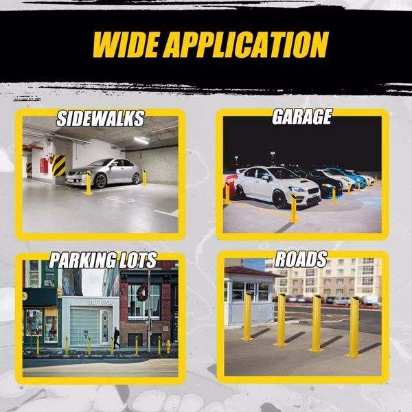 48inch Safety Bollards Yellow Powder Coated Steel Parking Barrier Post with 4 Anchor Bolts High Traffic Areas-2PCS Parking Curbs