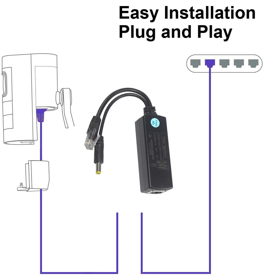48v Ethernet Passive POE Splitter 48V to 12V Compatible with Most Switches POE and All Web Cameras