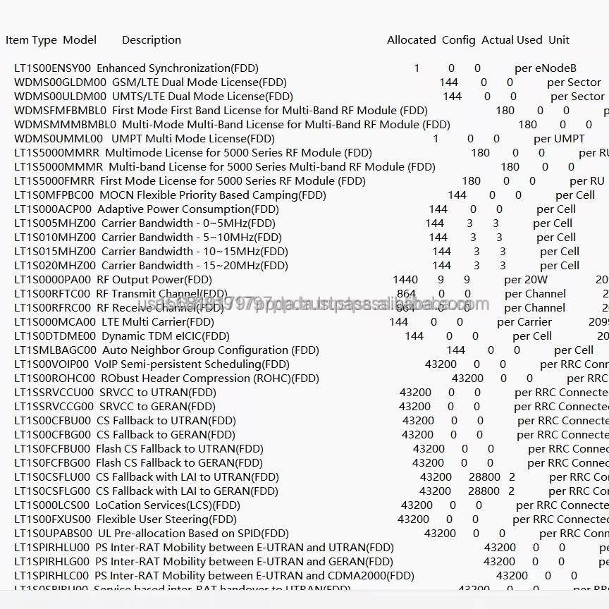 4G BBU eNodeB Licenses LT1S0000PA00 Telecom Parts with 20W RF Output Power