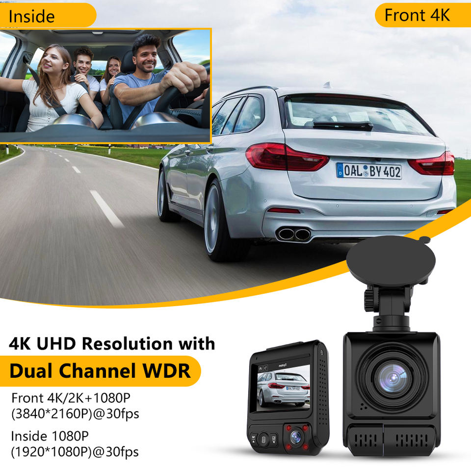 Build-in WiFi, App Control, WDR, Build-in GPS, park MODE, Motion Detection, Night Vision, Build-in Battery, Loop recording, Emergency Accident Lock, G-SensorFunction