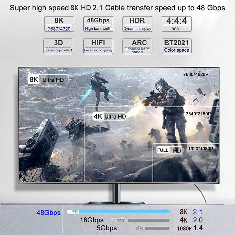 4K 8K HDMI 2.1 Cable 48Gbps High Speed 8K/60Hz HDMI 2.1 Cable for TV Projector Set Top box HDMI Video Cable 8K - Length - 5M