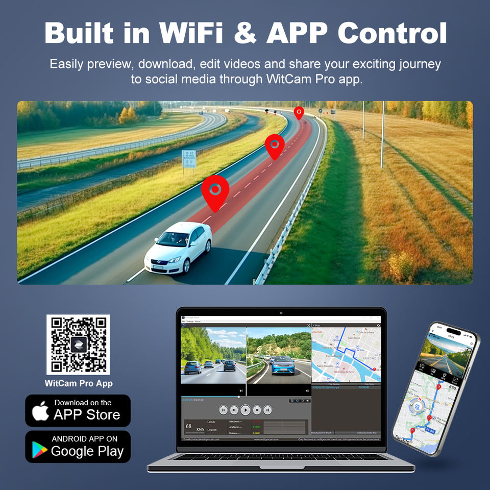 waterproof, Night Vision, WDR, G-Sensor, park MODE, Loop recording, Build-in WiFi, App Control, Motion Detection, Emergency Accident Lock