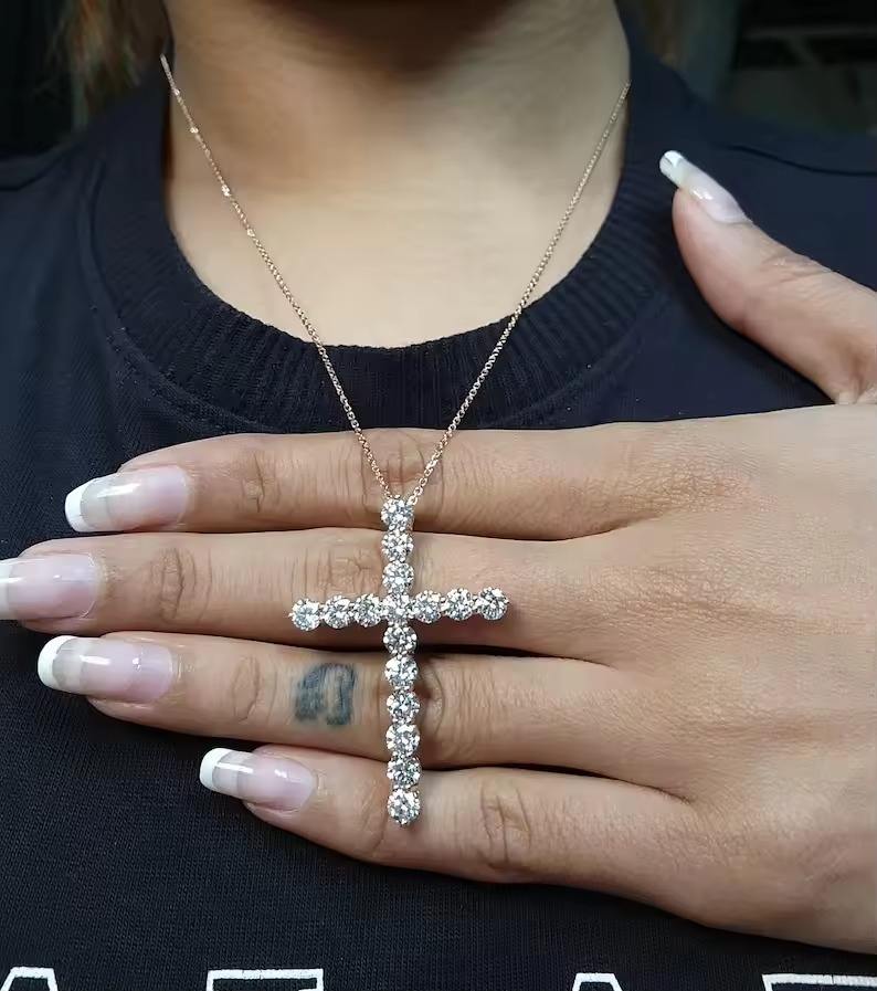 4MM Moissanite Round Diamond Cross Pendant 925 Sterling Silver Cross Design Teardrop Gold Plated Fine Jewelry Pendants & Charms