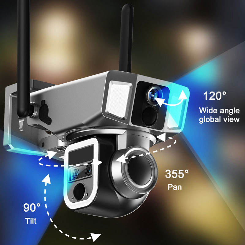 4MP Three-lens Solar Camera 4G Outdoor Construction Site Camera 10x Zoom 4G Wifi Solar Camera Audio Night Vision Human Tracking