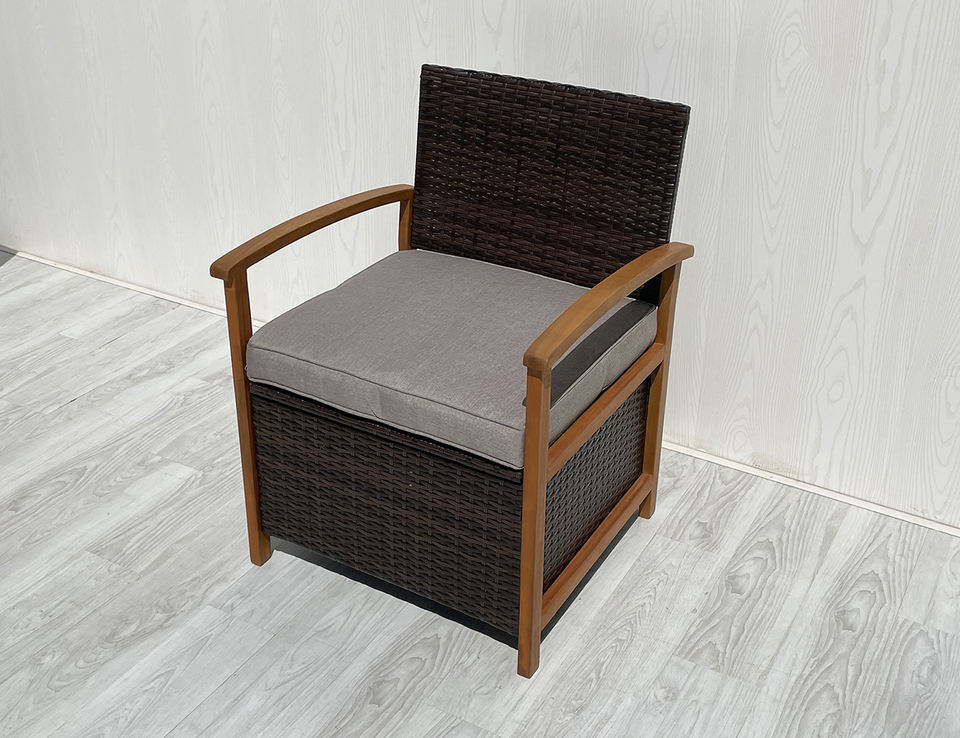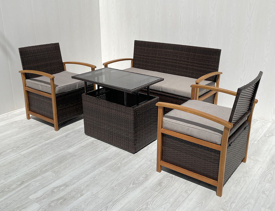 4P00057 4-Piece Modern Brown Acacia Wood PE Wicker Patio Furniture Set Outdoor Teak Sofa for Hotels Villas Garden Courtyard