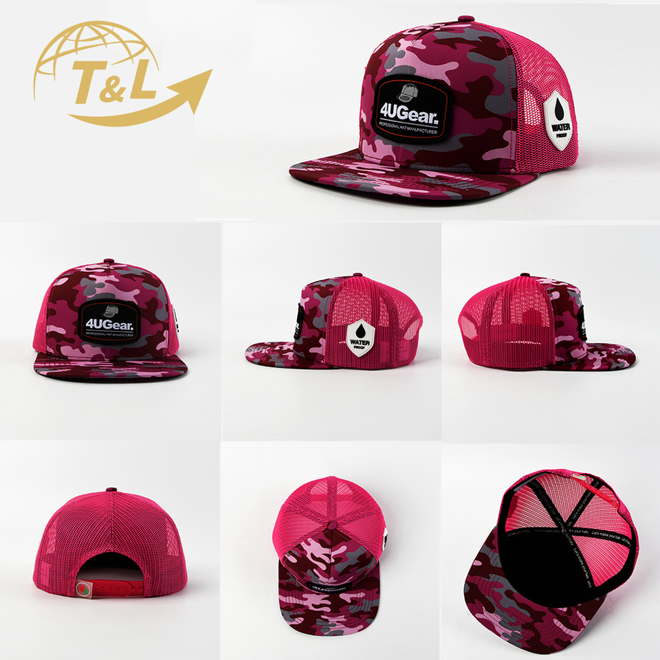 4UGEAR Wholesale Gorras Custom 4U High Quality 5 Panel Plain Mesh Caps Patch Logo Flat Brim Snapback Trucker Caps Hats for Men