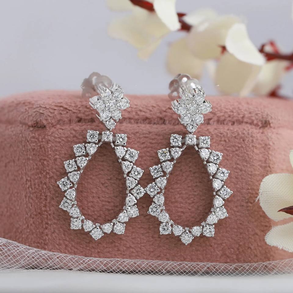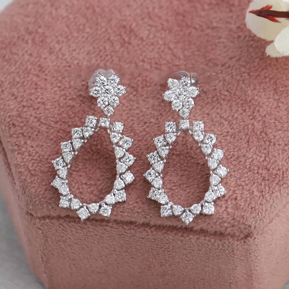 4ctw Solid Gold Open Pear Cut Style Moissanite Diamond Drop Dangle Earrings Genuine Diamond Drop Dangle Earrings Gift for Her