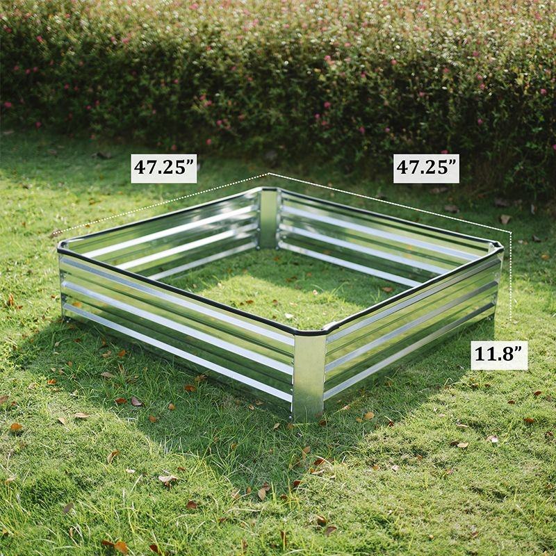 4ft X 4ft Rectangular Galvanized Steel Raised Garden Planter Bed - Outdoor for Plants, Vegetable and Flowers - Grey