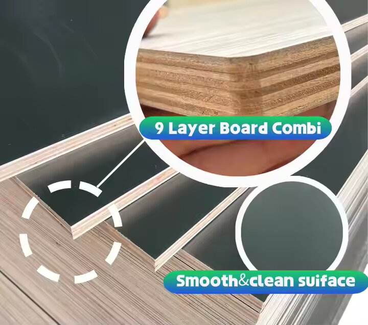 4ft X 8ft Black Film Faced Plywood Pine/Acacia Core Waterproof Melamine 10x Reusable E1 A2 for Smooth Cement Building Warehouses