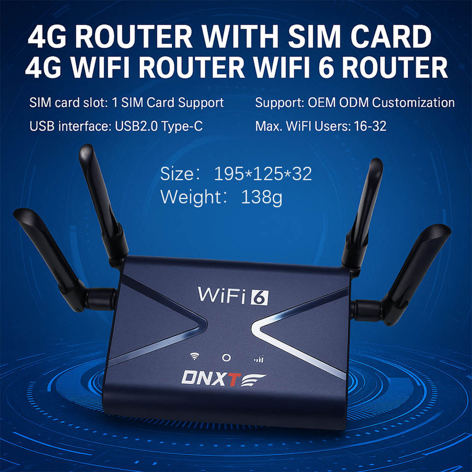4g Router with Sim Card 4g Wifi Router Wifi 6 Router Modem Wifi Sim Card USB2.0 Type-C WAN/LAN 4-Fold Antenna DNXT CPE907