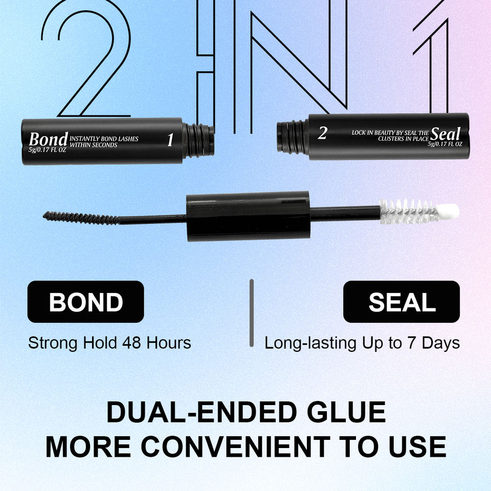 4in1 Professional DIY Eyelash Extension Kit Liquid Bond Seal Cluster Lash Adhesive 5ML Latex Free Vegan Waterproof Tweezers for