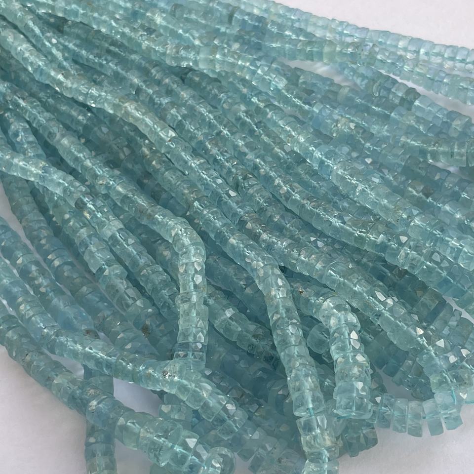 Natural Blue Aquamarine Faceted Heishi Gemstone Beads strand