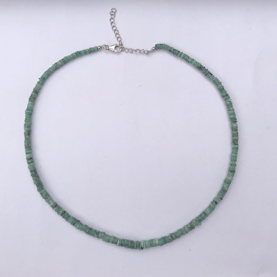 Product Name:4mm 6mm Natural Green Emerald Smooth Heishi Tyre Beads Necklace