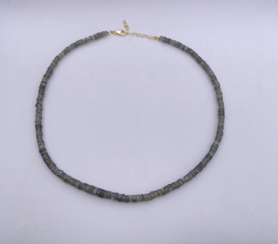 Natural Labradorite Smooth Heishi Tyre Beads Strand Gold Necklace