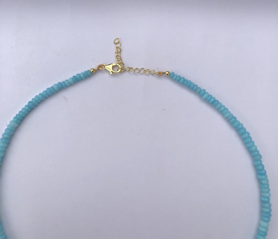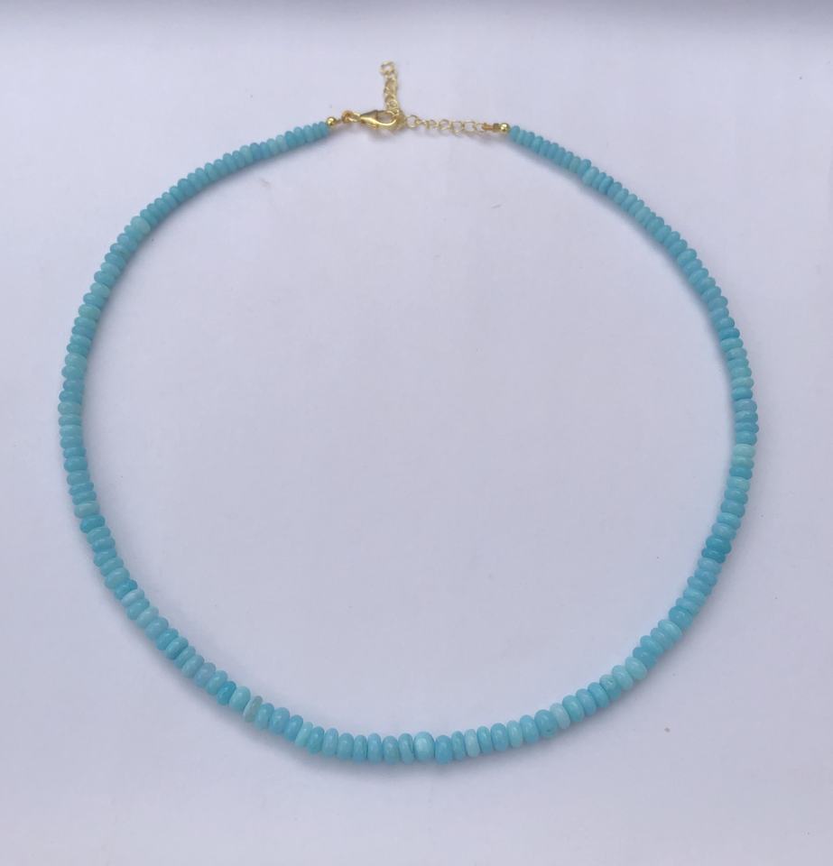 Product Name:Natural Sky Blue Opal Smooth Rondelle Beads Necklace