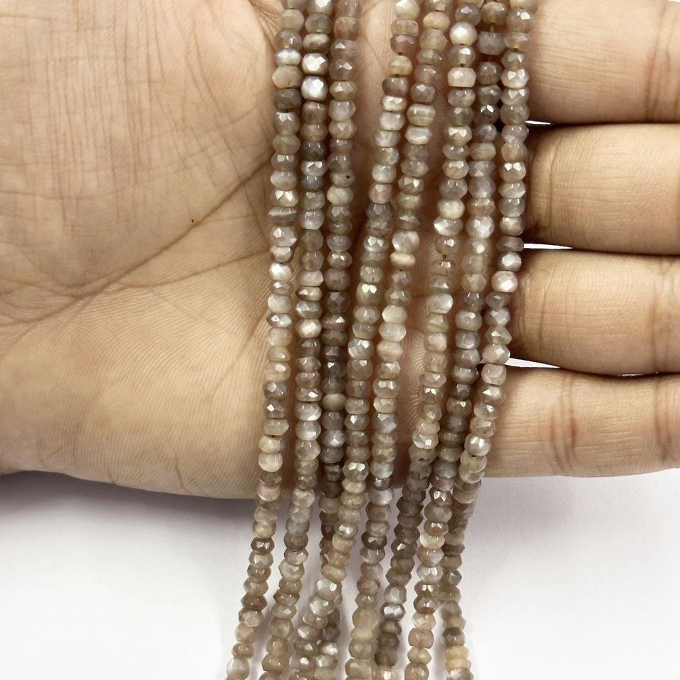 4mm AAA Grade Natural Chocolate Brown Moonstone Faceted Rondelle Gemstone Beads Necklace Bracelets Bulk Wholesale Beads Supplier
