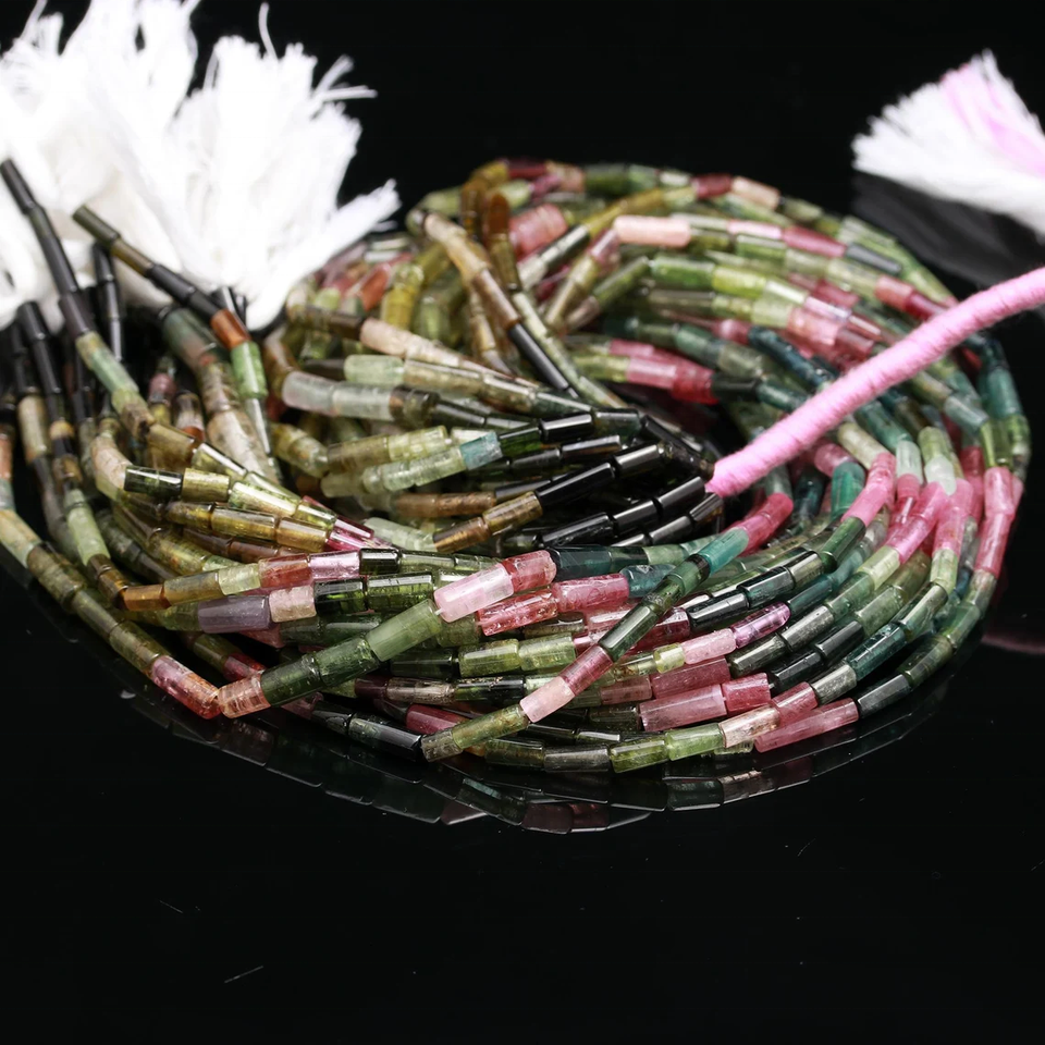 4mm Multi Tourmaline Rondelle Beads Natural Gemstone for Jewelry Making Smooth Tube Shape Watermelon Look