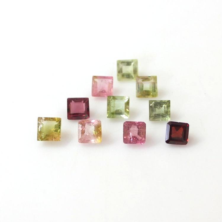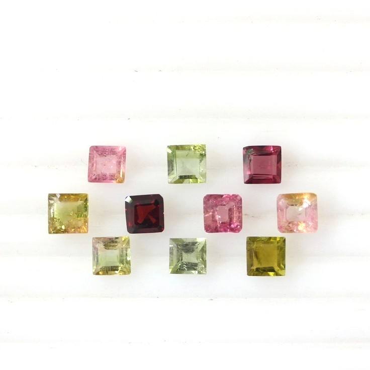 4mm Multi Tourmaline Square Cut Faceted Gemstones Beads For Jewelry Making Supplies Calibrated Natural Tourmaline Stone Sale
