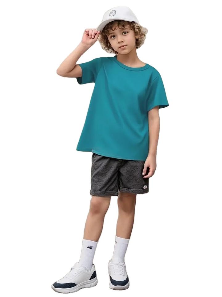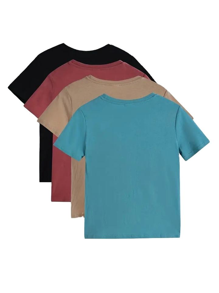 4pcs Boys' Cotton Short Sleeve T-Shirts Lightweight Summer Casual Tops in Black Red Teal & Brown Round Neck Machine Washable BD