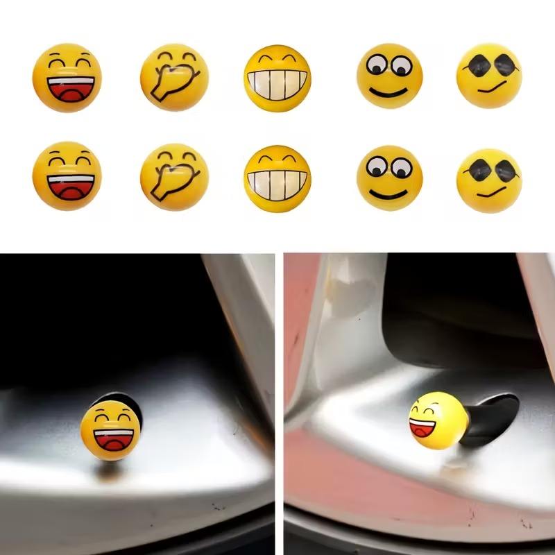 4pcs Funny Smile Balls Automotive Tire Modified Air Valve Caps Bolt Type for Automotive Tire Styling Decoration