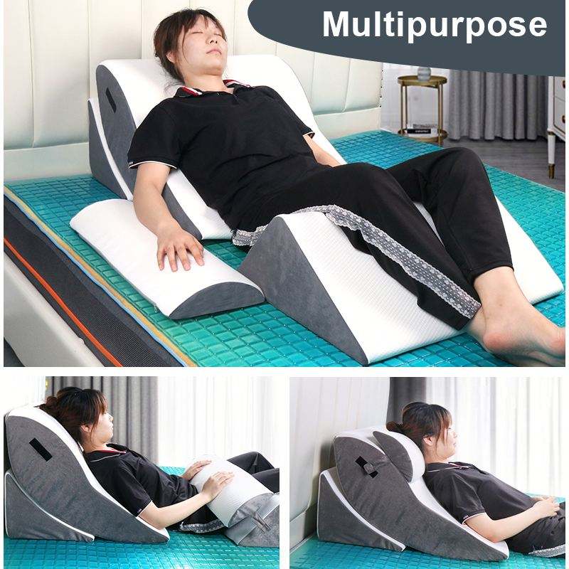 4pcs Orthopedic Bed Wedge Pillow Set Post Surgery Memory Foam for Back Neck Leg Pain Relief Comfortable Knitted Sitting Pillow