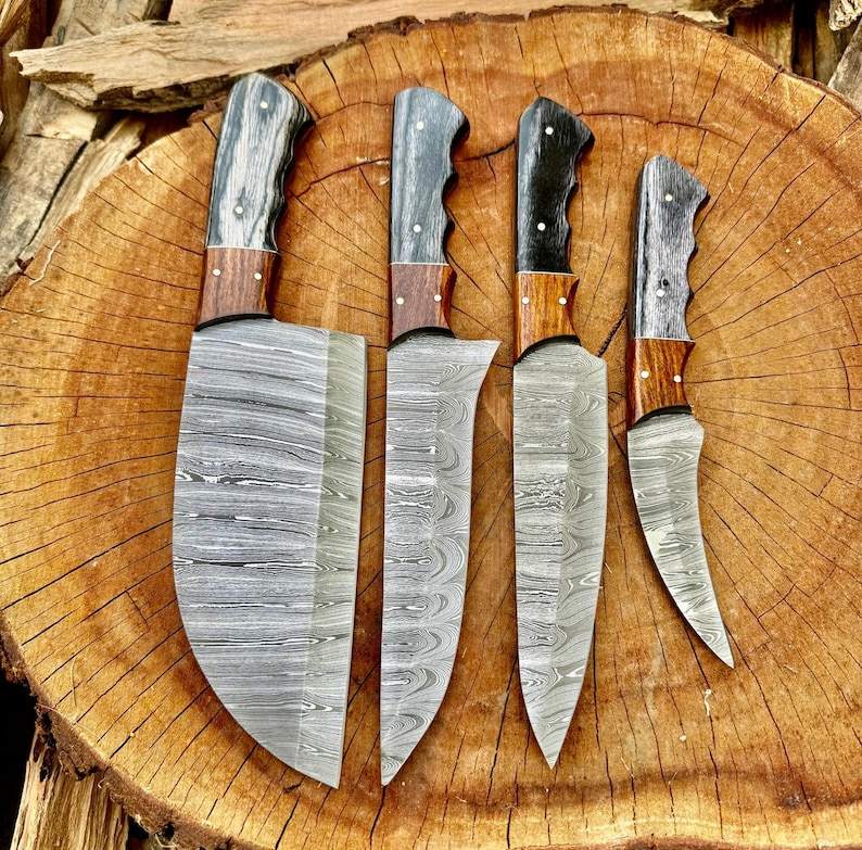 4pcs Professional Damascus Steel Chef Knife Damascus Kitchen Knife with Leather Roll Bag