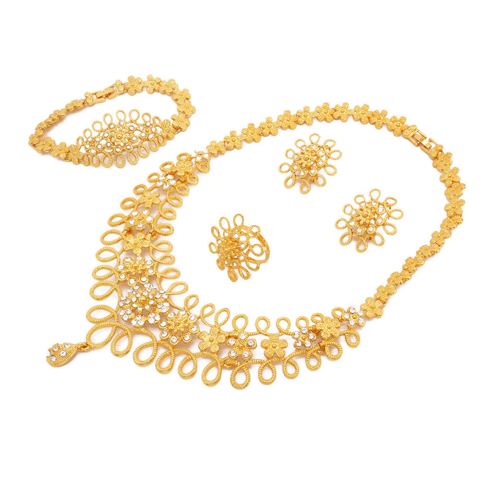 4pcs Set Luxury Women Jewelry Gift Dubai 24K Gold Jewelry Set Bride Necklace Bracelet Earrings Ring
