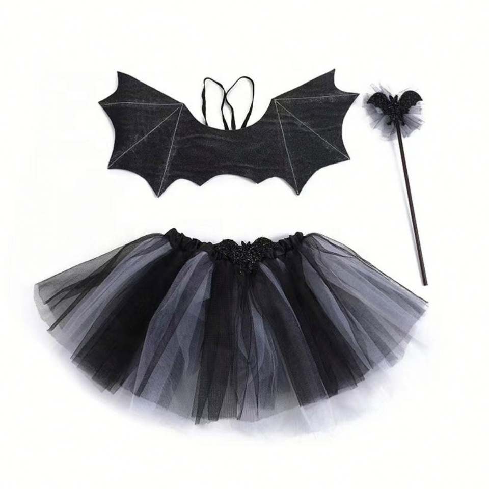 4pcs/set Kids Halloween Bat Fairy Wand Wings Tutu Dress Black Devil Angel Costume Wings with Headband
