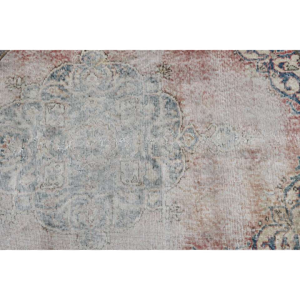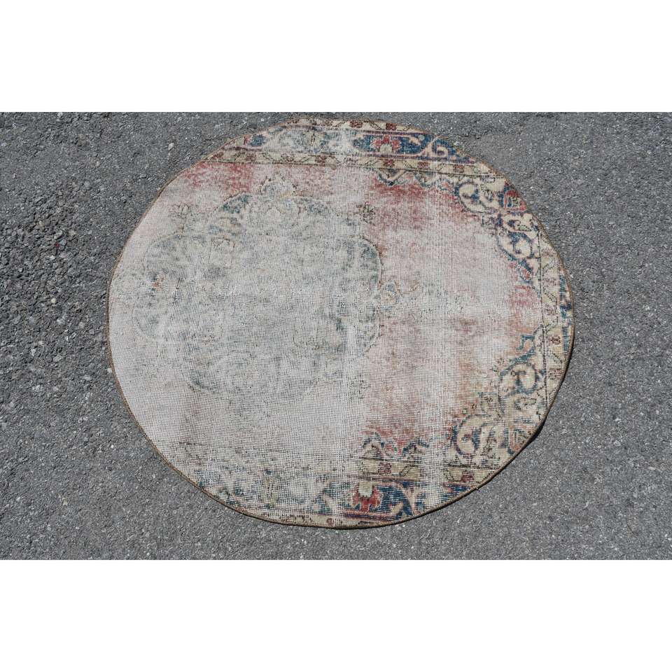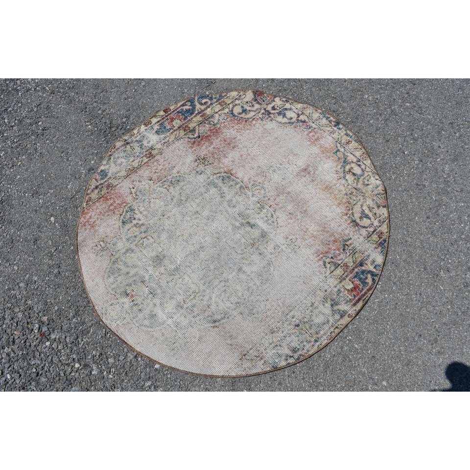 4x4 ft Turkish Wool Rug Round Vintage Patchwork Design Red Camouflage Pattern with Latex Backing