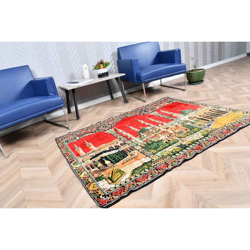 4x5.2 ft Turkish Accent Vintage Red Ombr Eco-Friendly Medium Pile Wool Patchwork Rug with Latex Backing
