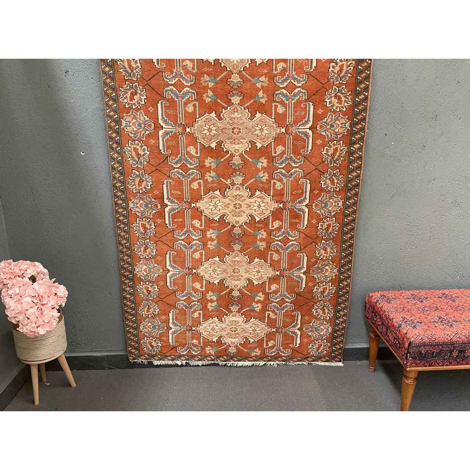 4x6.2 ft Vintage Rug, Rug, Red Polka dot Rug Wool
