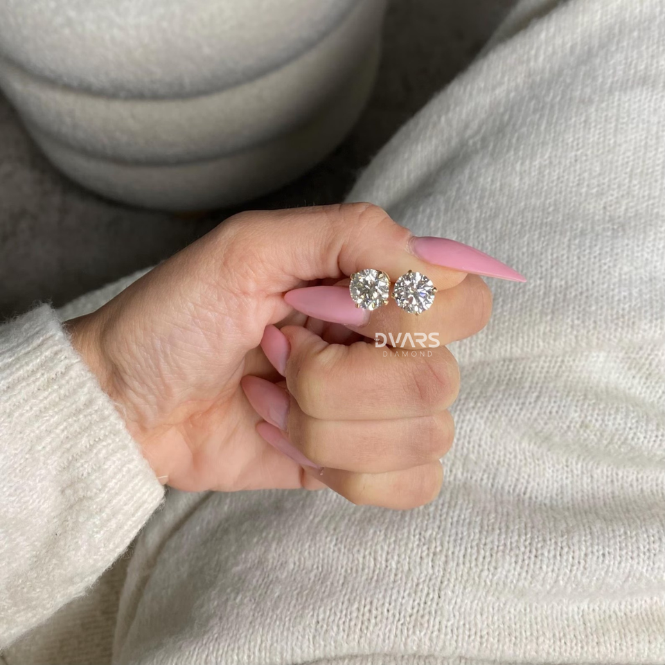 5.00 Carat Lab Grown Diamond Earrings | IGI Certified | Trendy Luxury Classic Studs | 14K Rhodium Plated Gold | Engagement Party