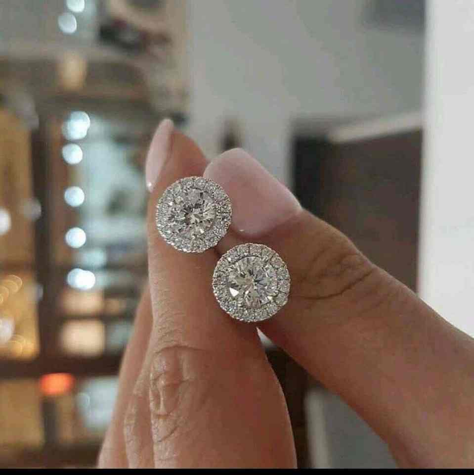 5.00 Ct Halo Diamond Stud Earrings 14k White Gold High Quality Push Back VVS1/F Diamond Solitaire Earrings