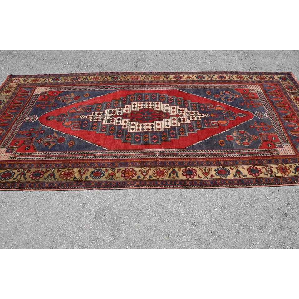5.1x10.3 ft Eco-Friendly Traditional Wool Rug Large Turkish Red Patchwork Medium Pile Latex Backing