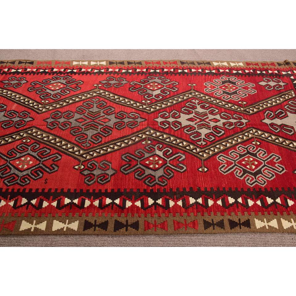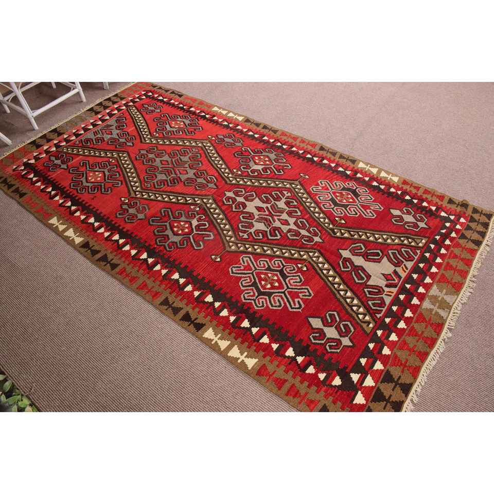 5.1x9.8 ft Wool Rug Large Turkish Red Patchwork Kilim Southwestern Rug with Latex Backing Eco-Friendly Traditional Home Decor