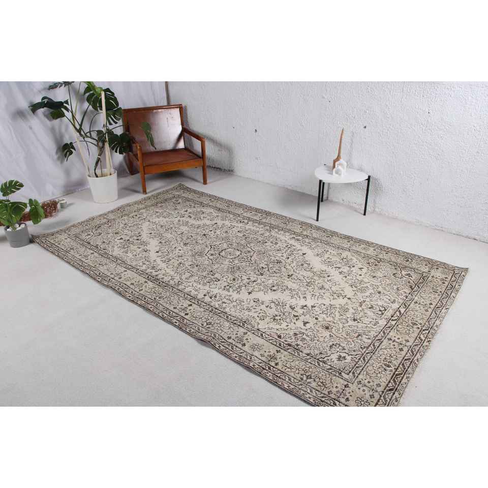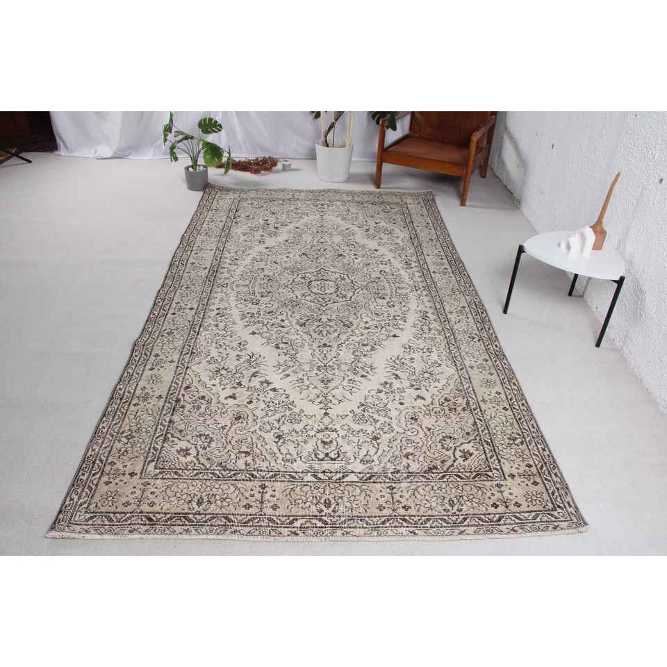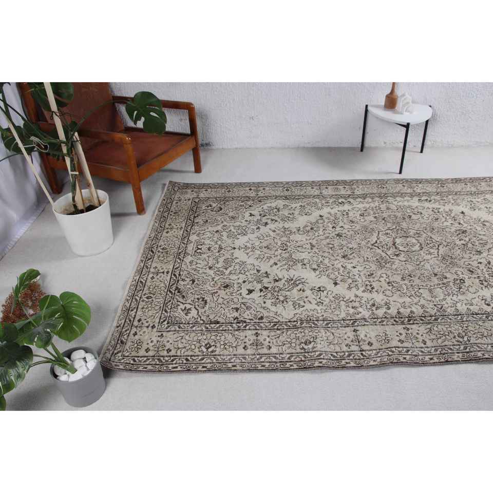 5.2x9.3 ft Rug, Turkish Vintage Rug, Brown Gray Polka dot Wool Rug