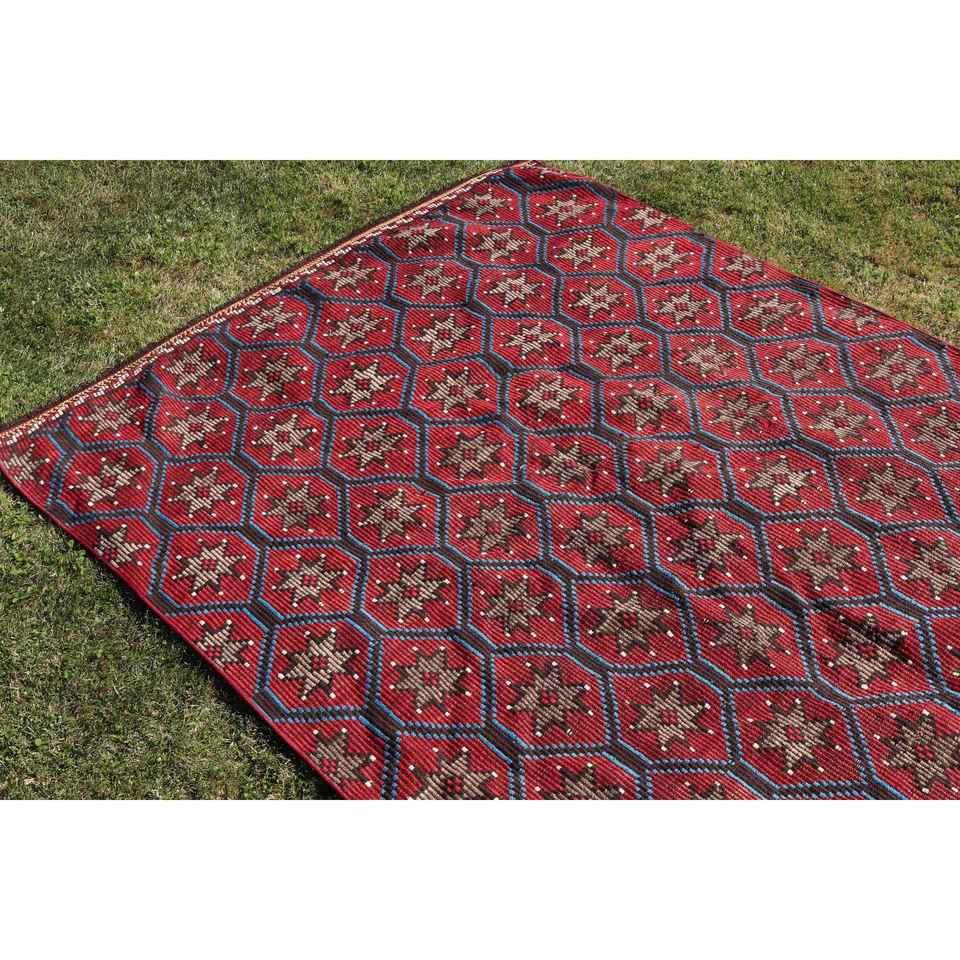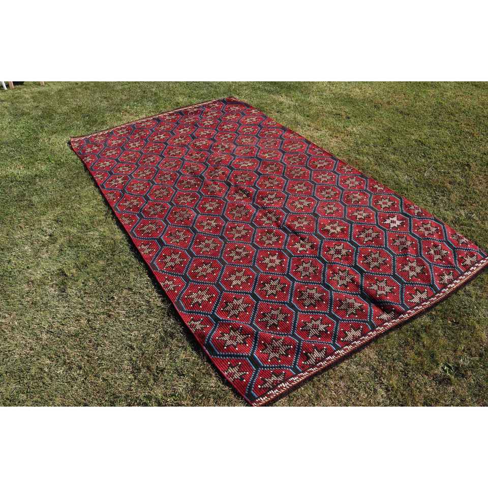 5,4x9,7 ft Rug, Turkish Kilim Rug, Vintage Red Wool Check Rug