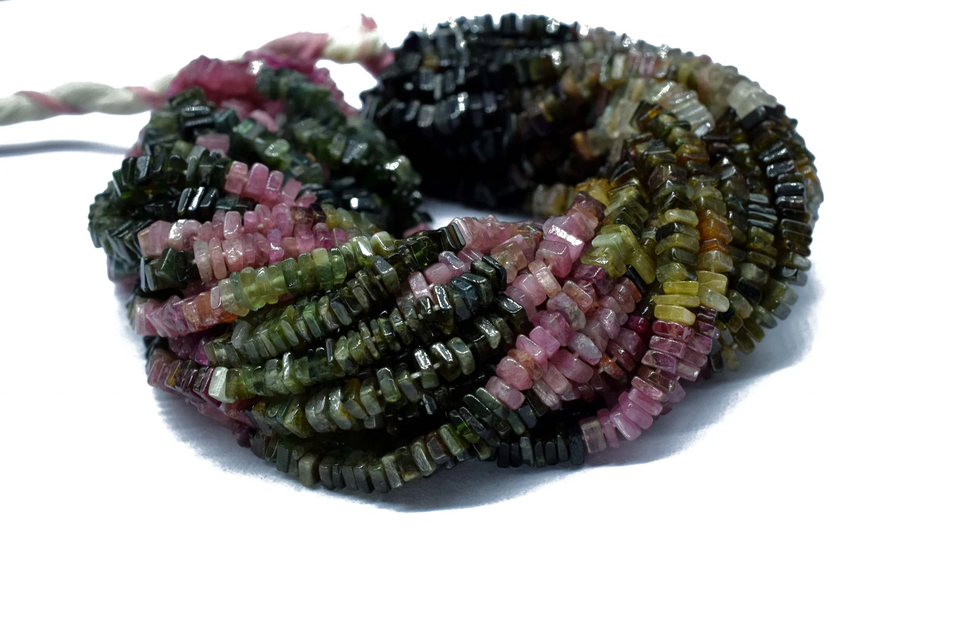 Name:Multi Tourmaline Smooth Heishi Square Shape Beads
