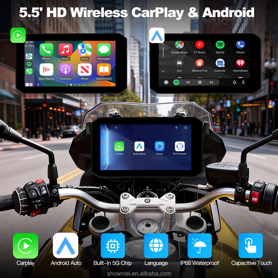5.5Inch WiF Apple Carplay Display Screen Wireless Waterproof Navigation Compatible with HD 1080p Camera
