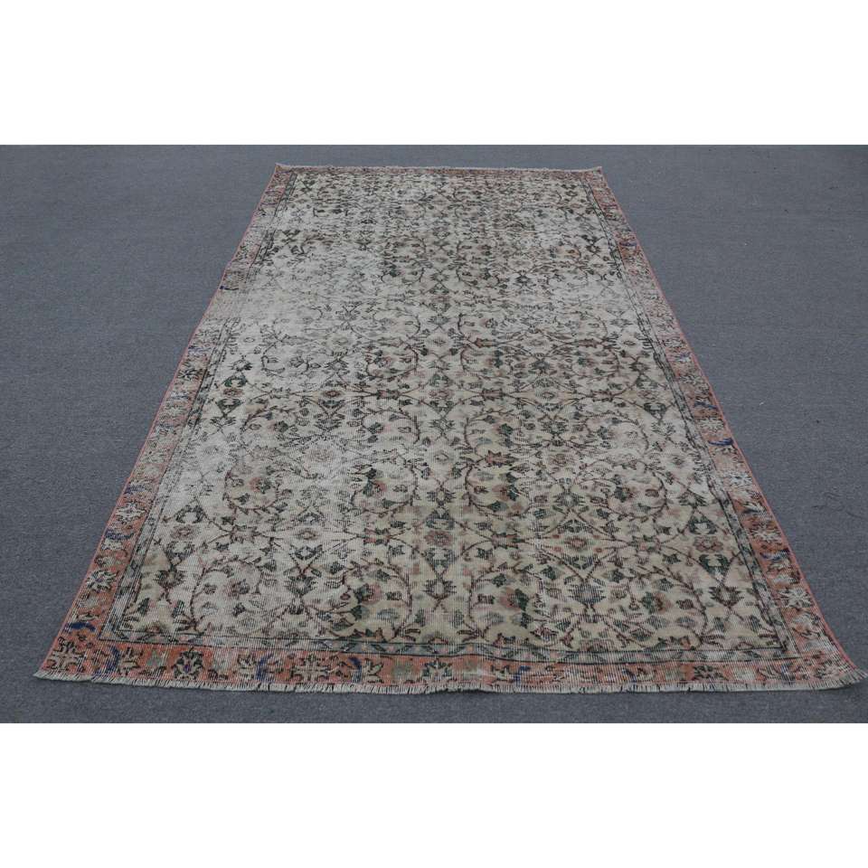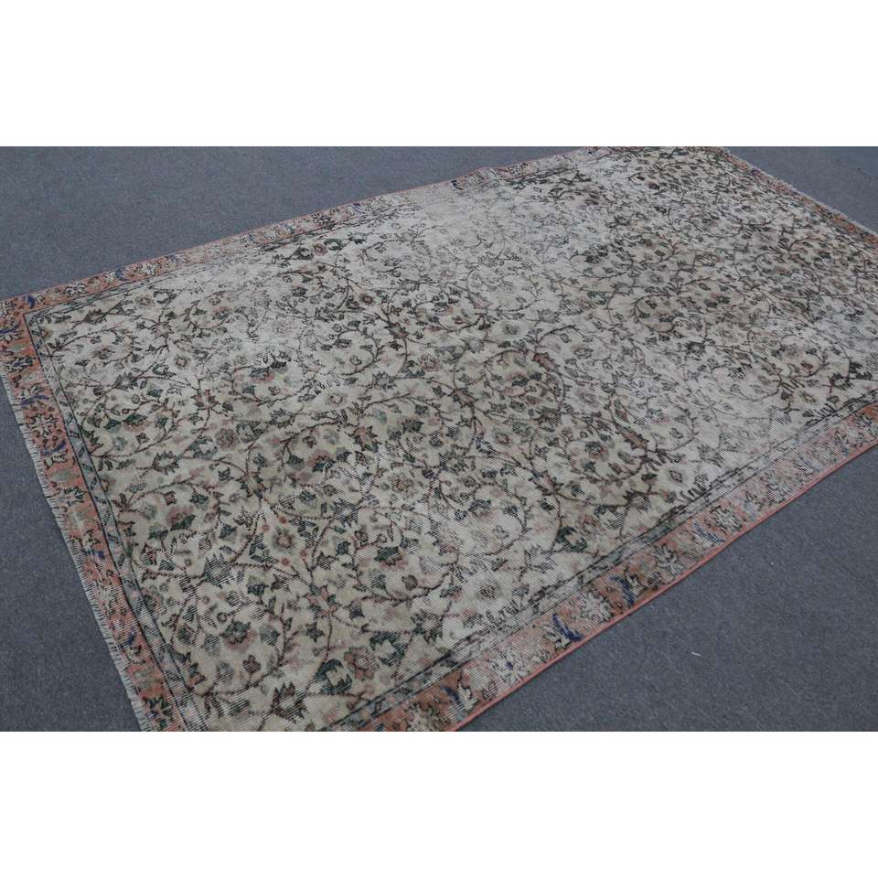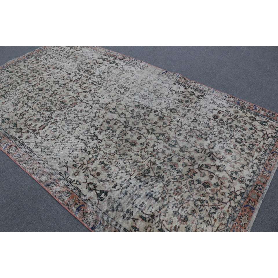 5.5x9.4 ft Turkish Rug, Vintage Large Rug, Brown Blue Bordered Wool Rug