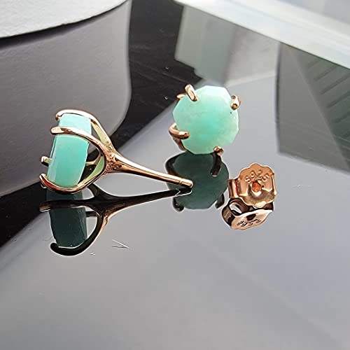 5-7mm Raw Amazonite Stone Gold Plated Prong Set Stud Earrings Handmade Dainty Minimalist Birthstone Jewelry for Women