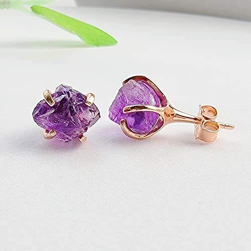 5-7mm Raw Amethyst Stone Rose Gold Plated Prong Set Stud Earrings Handmade Dainty Minimalist Birthstone Jewelry for Women
