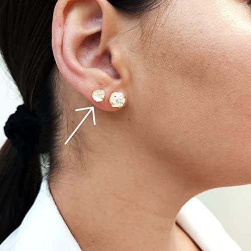 5-7mm Raw Crystal Quartz Stone Rose Gold Plated Prong Set Stud Earring Handmade Dainty Minimalist Clear Gemstone for Women
