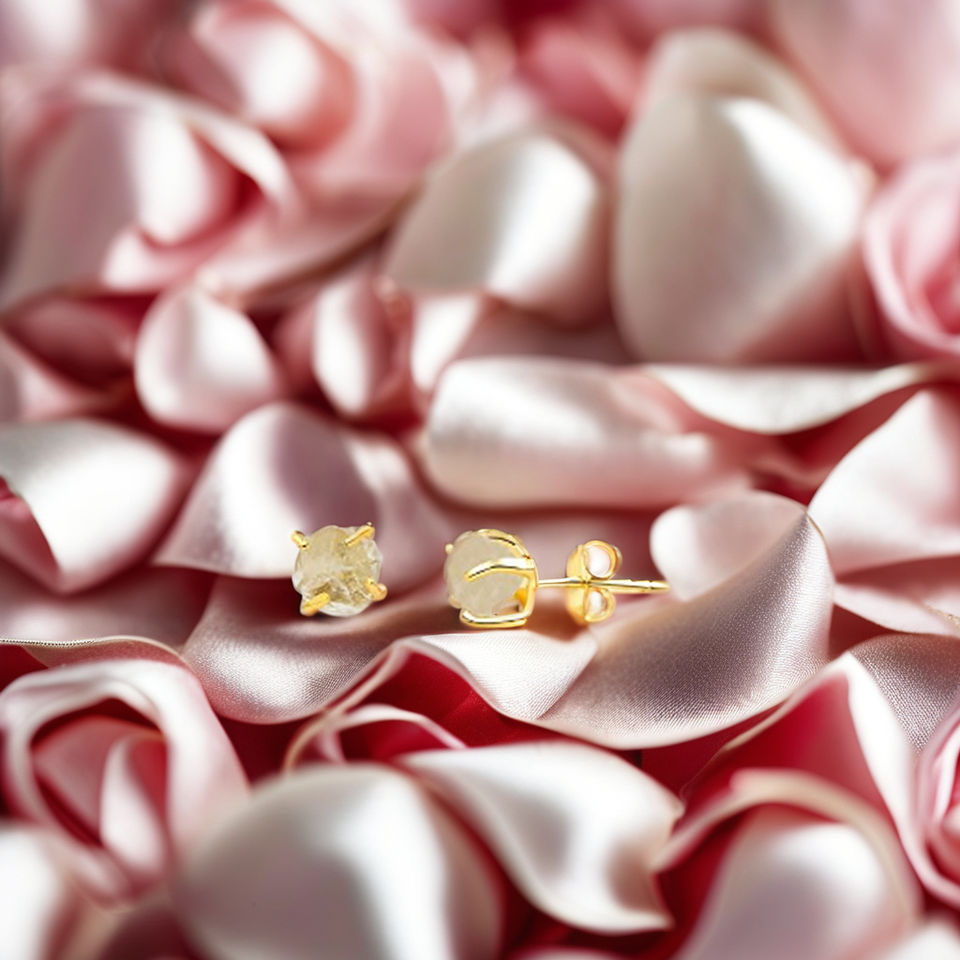 5-7mm Raw Crystal Quartz Stone Gold Plated Prong Set Stud Earrings handmade Dainty Minimalist Clear Gemstone Jewelry for Women