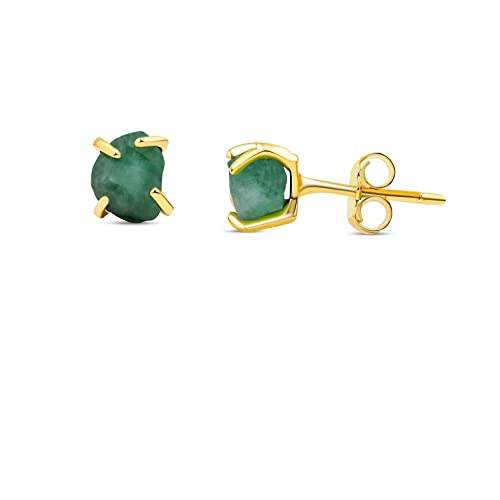 5-7mm Raw Emerald Stone Gold Plated Prong Set Stud Earrings Handmade Dainty Minimalist May Birthstone Jewelry for Women